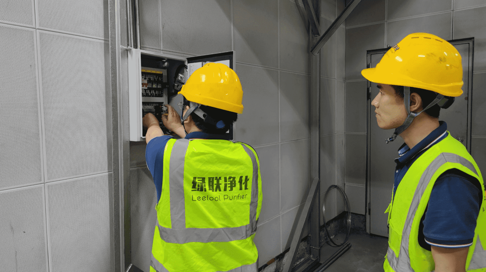 ▲綠聯凈化器黑煙凈化器電控箱接線中