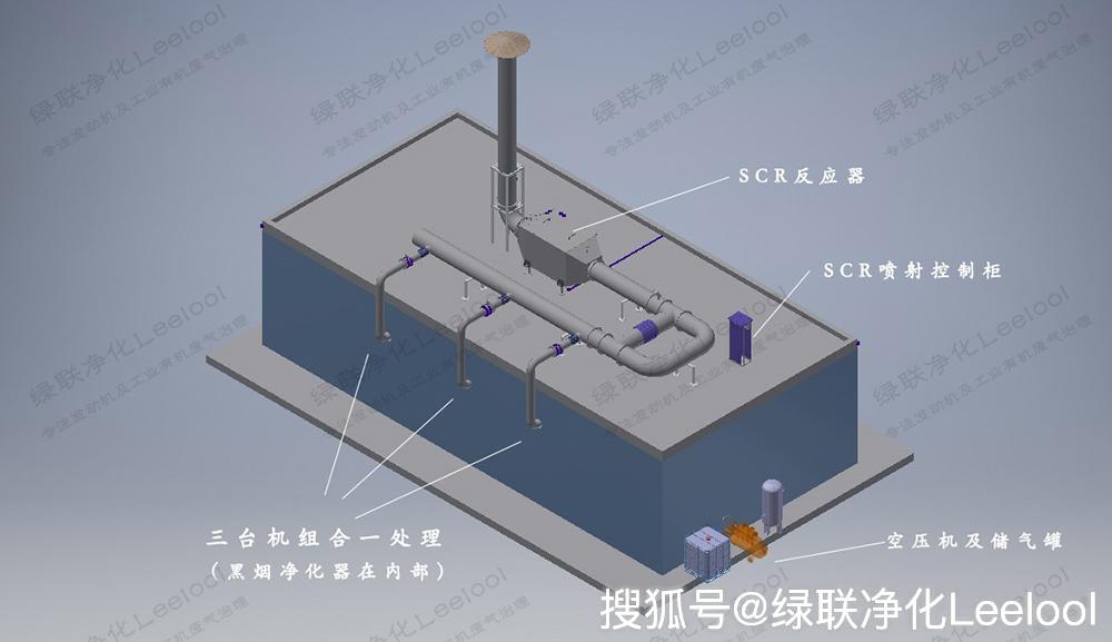 解決方案:三臺發動機尾氣合一處理