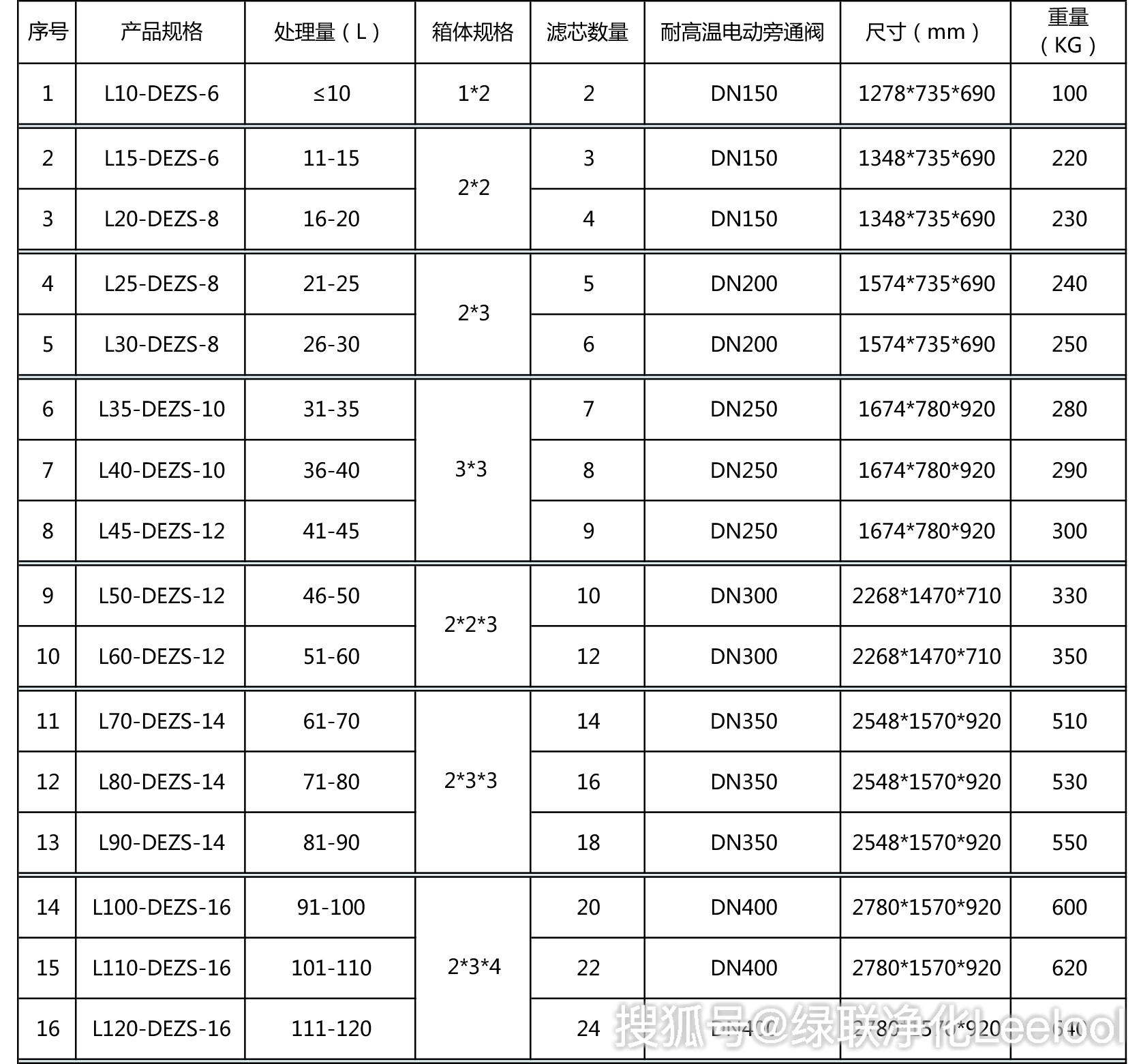 綠聯凈化L-DEZS系列產品規格表(2019年08月版)